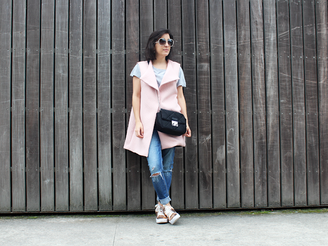 You can't even imagine how much I miss the sewing school. Although I had made friends there, I loved the routine of Saturday mornings: to get myself, to take the dossier, molds, scissors, fabrics and to go to the Platform of the Arts in Guimarães. One way to fill the nostalgia is to wear the pieces that I created there and these I can never dislike. One of the pieces that I use most is this pink vest!