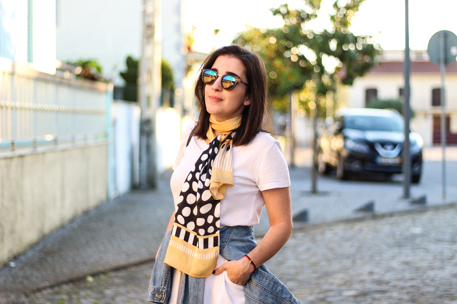 Tenho de me habituar a usar mais lenços. São um acessório mega versátil, colorido para os looks de verão. Isto é quase um compromisso comigo mesma. Usar lenços no cabelo como bandolete, com rabo de cavalo, a fazer de cinto em calças, por cima de vestidos, no pescoço, nas malas, nos looks de bikini, nos looks citadinos, portanto dá para tudo!