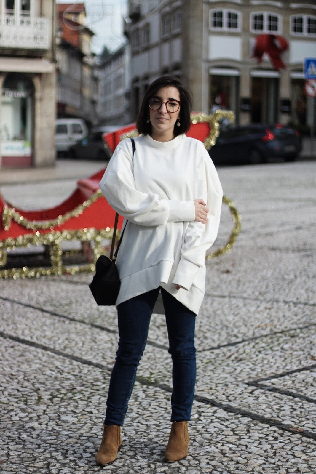 Aqui está o look que usei na noite da consoada! Era para ser tão confortável que até estou a usar os meus óculos. Este look marca também uma mudança que fiz, e que tenho andado a trabalhar em alguns anos que é, comprar menos, muito menos. E esta camisola foi-me cara, é de uma marca portuguesa e por isso é para durar anos, e nesses anos, tenciono não comprar outra do gênero. Ajudar quem é empreendedor, ajudar a economia nacional e ajudar também o ambiente, é um assunto tendência e ainda bem, eu cá estou para alinhar nesta modernice - pelo menos esta é positiva!
